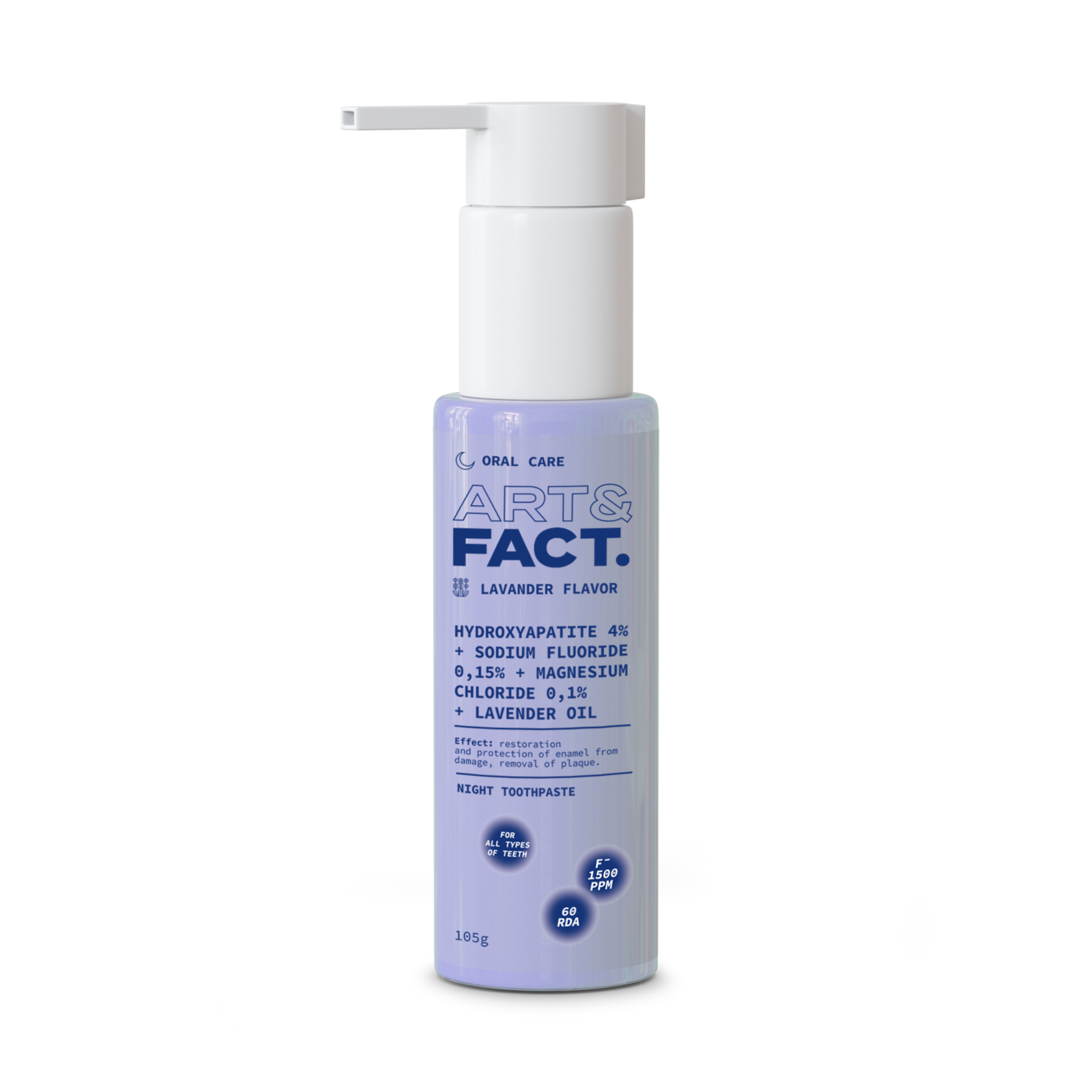 Hydroxyapatite 4% + Sodium Fluoride 0,15% + Magnesium Chloride 0,1% + Lavender Oil. Night toothpaste.